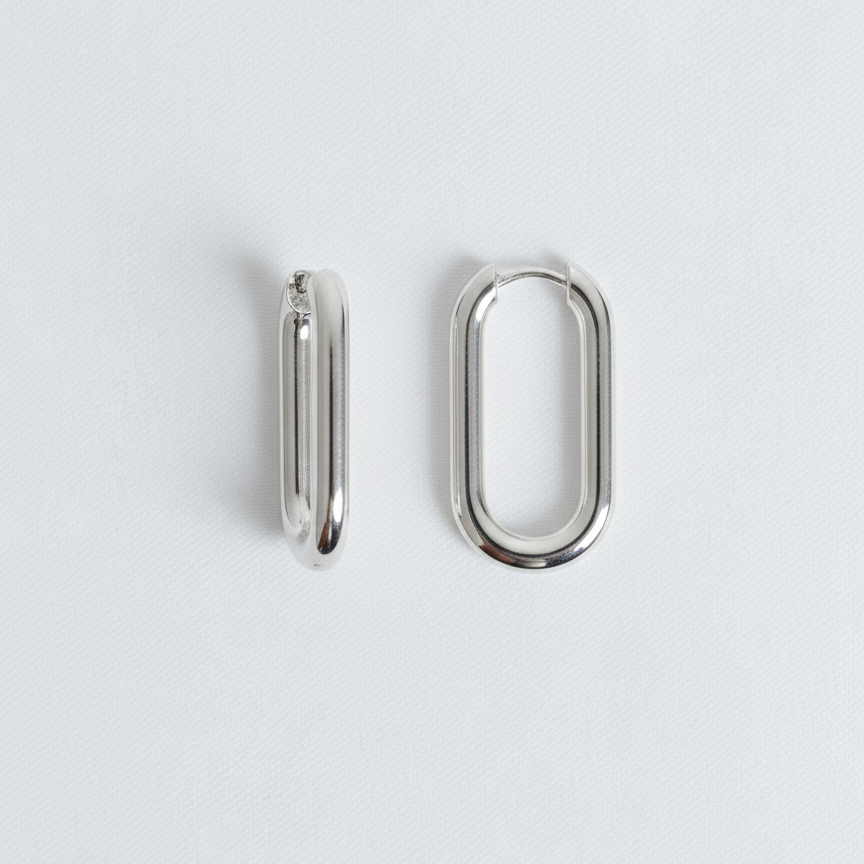 素材・サイズ 素材:SV925(ロジウムコーティング) デザイン:オーバルフープ(長円形) サイズ:縦 約22mm × 横 約15mm