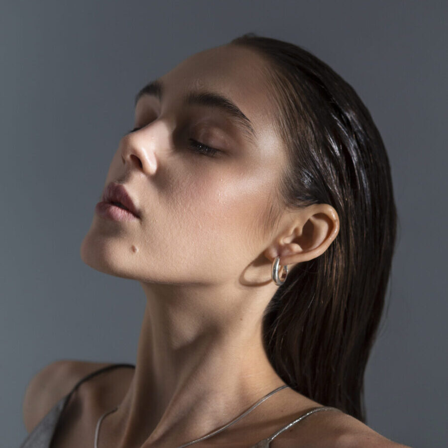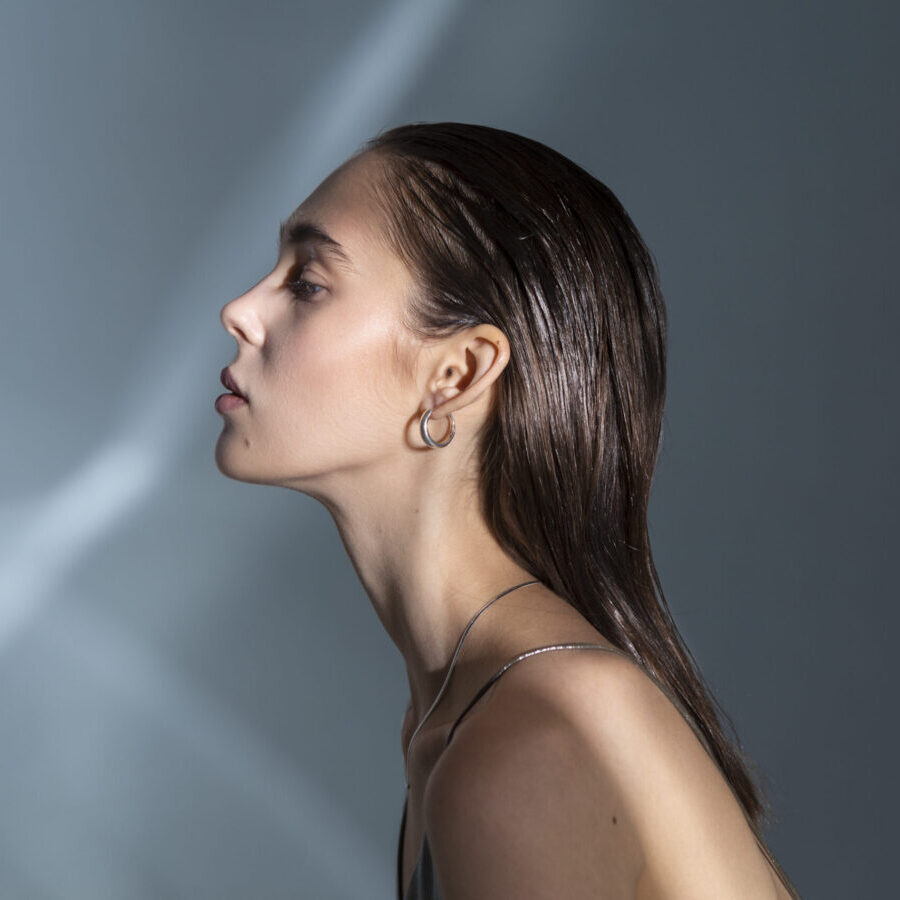 洗練を加速させる、シャープな曲線美。 ネックレスと組み合わせることで、コーディネートの「質」を一段引き上げるミドルクラスのピアス。垂直に伸びるラインが顔立ちをすっきりと知的に見せる、モダンな一品です。 ネックレスと同じシルバー素材でありながら、より厚みを持たせた鏡面仕上げを施すことで、横顔に「凛とした強さ」を添えます。