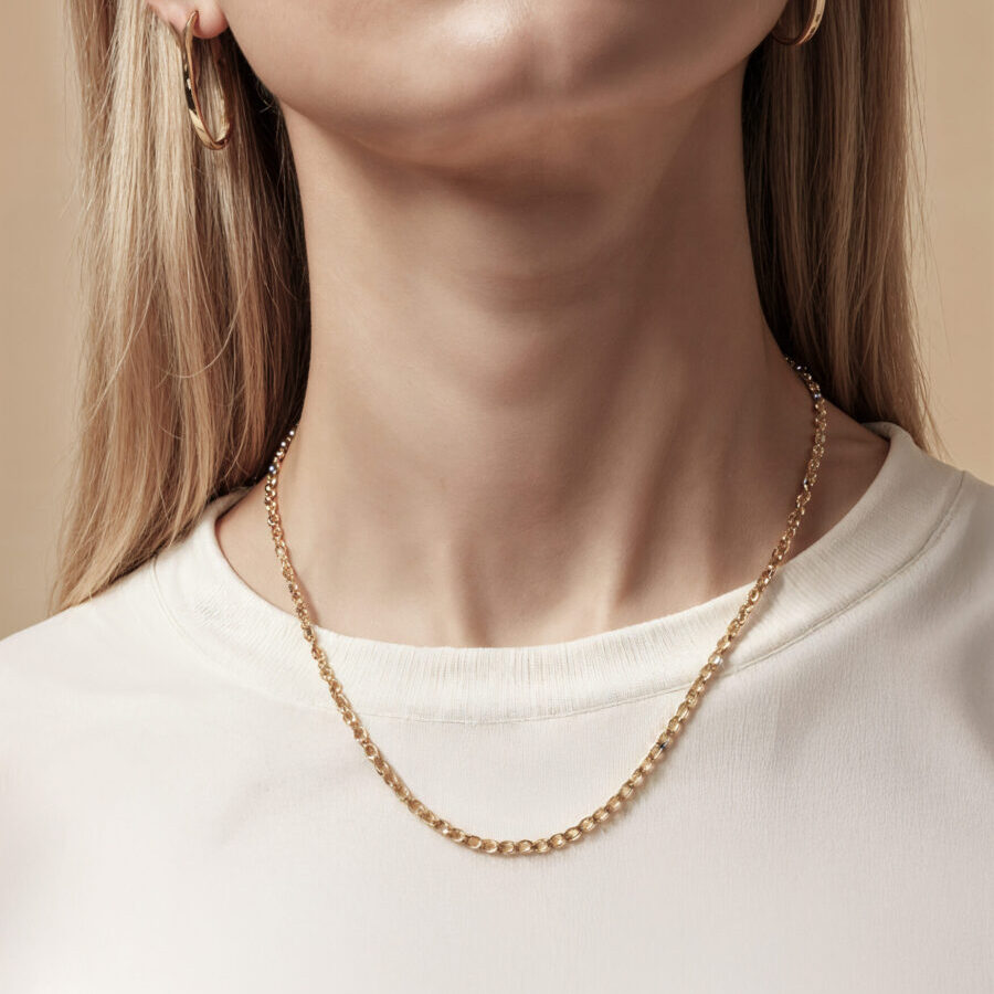 揺るぎない自信を、その胸元に。 緻密に編み込まれたゴールドの連なりが、確かな存在感を放つ喜平チェーンネックレス。 シンプルながらも、計算された造形美が光るモダンな一品。 鏡のように磨き上げられたゴールドが光を反射し、 顔周りに都会的で知的な印象をプラスします。 肌に馴染む滑らかな質感が、着脱のしやすさだけでなく、 忙しい日常に「自分らしさ」というアクセントを添えてくれます。